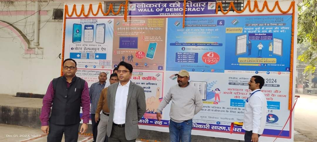 सारण (बिहार) संवाददाता वीरेश सिंह: सारण जिला निर्वाचन पदाधिकारी-सह-जिला पदाधिकारी अमन समीर ने एक अनूठी पहल की। उन्होंने समाहरणालय परिसर में 'वॉल ऑफ डेमोक्रेसी' का लोकार्पण फीता काट कर किया. उन्होंने कहा कि निर्वाचन आयोग के महत्वकांक्षी अभियान स्वीप के तहत इसकी शुरुआत की जा रही है। यह एक ऐसी दीवार है जिससे लोगों को चुनाव के संबंध में सभी जानकारी मिल सकती है। मतदाता सूची में नाम जोड़ने से लेकर, नाम सुधार, विलोपन तथा मतदान करने तक के सभी तरह की सूचना प्राप्त हो सकेगी। यह आम आदमी के लिए पथ प्रदर्शक की भूमिका निभाएगा। डीएम श्री समीर ने कहा कि भारत दुनिया का सबसे युवा देश है. इसलिए लोकतंत्र के विकास और मजबूती में युवाओं की भूमिका अहम हो जाती है, हमारा लक्ष्य है कि 'युवा शक्ति मतदान प्रक्रिया में सक्रिय भूमिका निभाए। सारण के 18 साल पूरा करने वाले मतदाताओं से उन्होंने आवश्यक रूप से वोटिंग करने और भावी मतदाताओं से पंजीयन कराने का आह्वान किया।